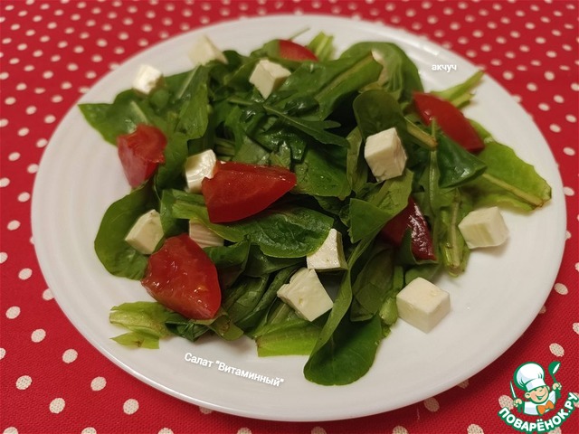Готовила салатик просто себе на ужин. Из зелени была лишь руккола, сыр обычный, клюква вяленая. Заправляла салат после фотосессии. Вкусно получилось.
