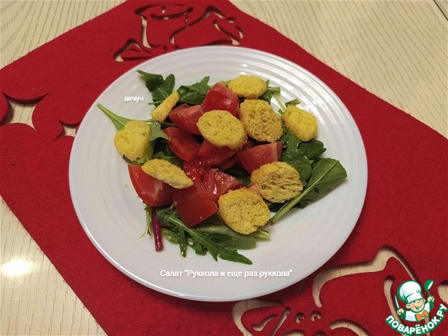 Очень простой в исполнении, но очень вкусный салат! Сухарики были готовые покупные (только такие). С удовольствием им поужинала.