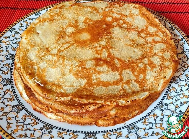 Замечательные блины. Получились не тонкие и не толстые - средние. Но очень вкусные!