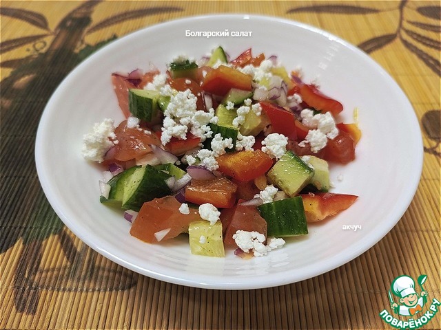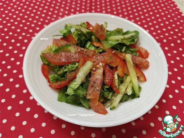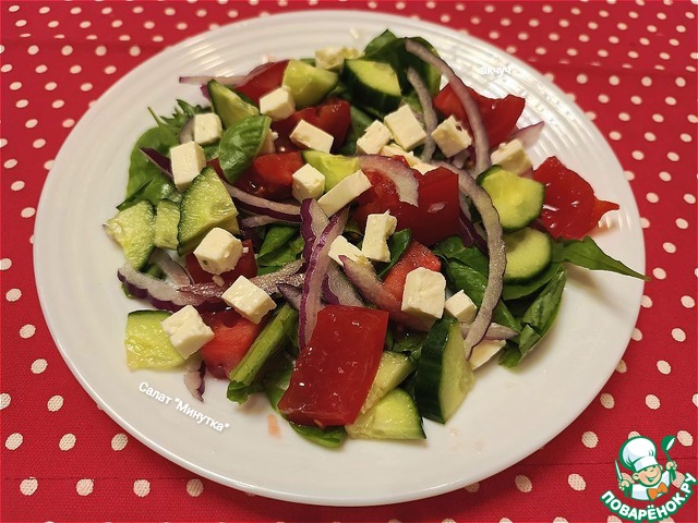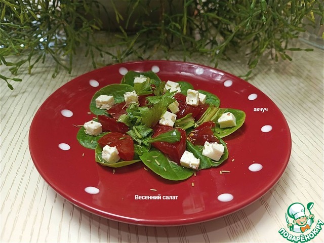 Чеснок использовала сушеный, лук крымский, сыр – брынза слабосоленая. Очень понравилась заправка именно с яблочным уксусом. Салат получился очень вкусный!