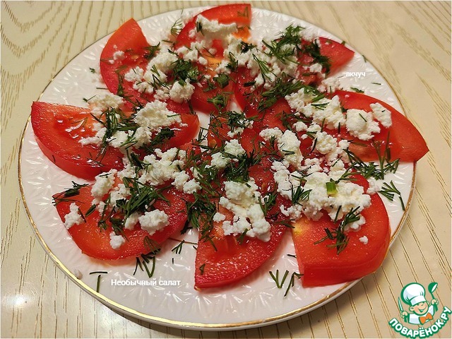 Такой салат с творогом делала впервые. И хотя в холодильнике дожидалась своей очереди брынза, все-таки приготовила по рецепту с творогом. И вы знаете, мне понравилось. Удивительно, казалось бы несовместимые продукты органично объединились.