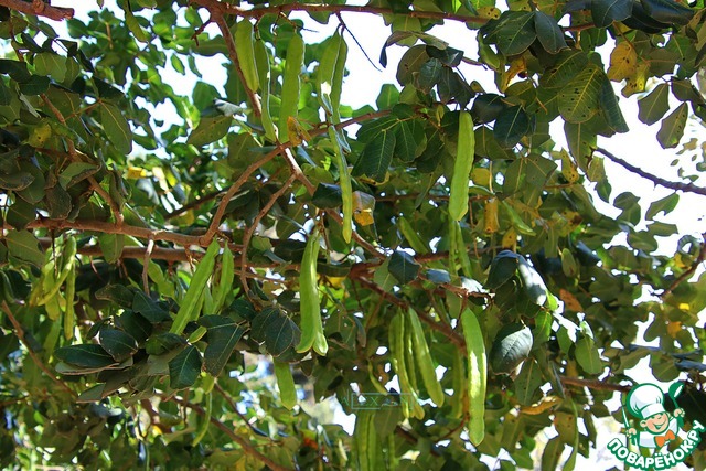 Порошок, получаемый из засушенных бобов рожкового дерева, называется кэроб.Используется вместо какао-порошка людьми, которым противопоказан кофеин.