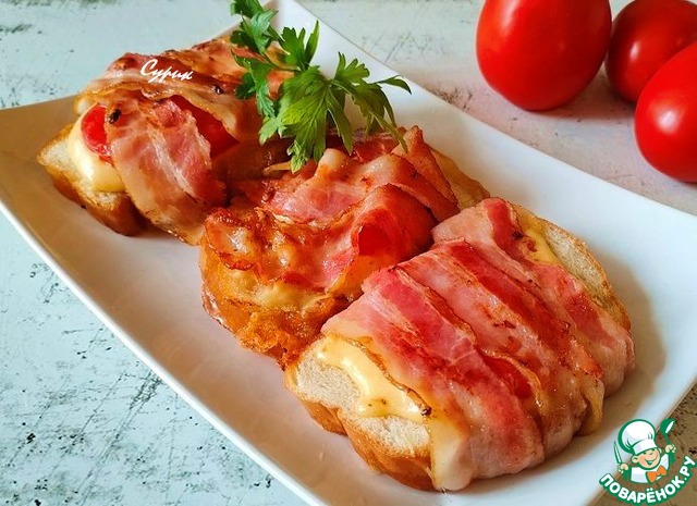 Это необыкновенно вкусно! Я готовила на плите и на обычной сковороде. Быстро, просто и отличный результат! Хлеб использовала белый батон, поэтому вкус немного напоминает пиццу. Отличная закуска или сытный завтрак.