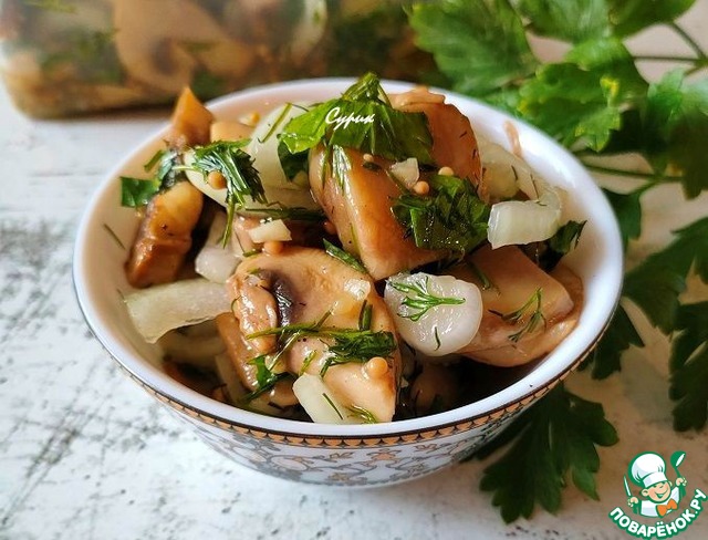 Грибочки получились очень вкусные, ароматные, хрустящие! Горчицу добавила зернистую, укроп и петрушка – свежие. Остальное всё по рецепту. Не оторваться от грибочков, отличная закуска.