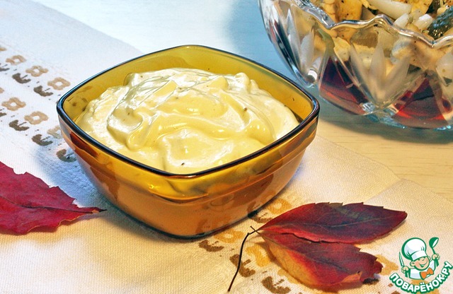 Салат заправляла домашним майонезом, который приготовила по рецепту ниже.