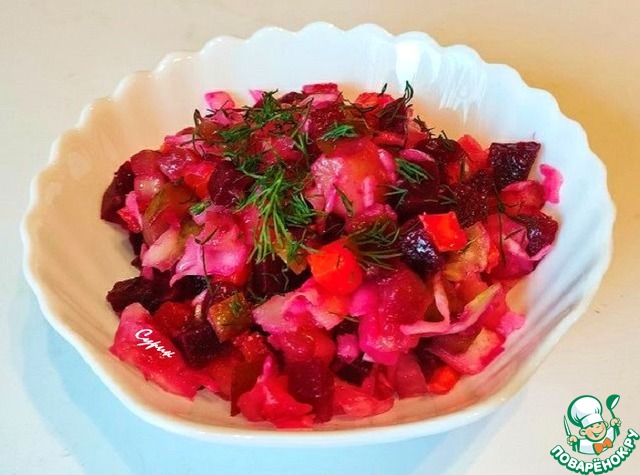 Очень вкусный и ароматный винегрет! Лучок обжаренный отлично вписался в остальные овощи. А с ароматным маслом… супер!!!
