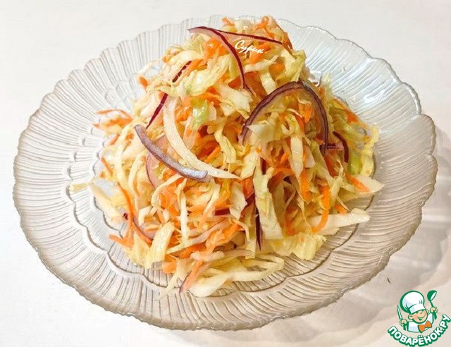 Великолепный салат! Какой же он вкусный! Именно с яблочным уксусом понравилось! Лук добавила красный.