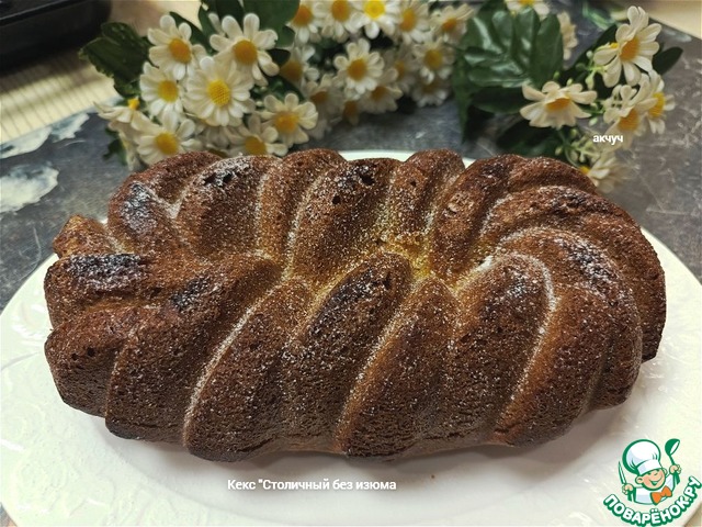 Неожиданно выяснилось, что выпечка практически закончилась. Бегом на кухню. Готовила точно по рецепту. Выпекала тоже 1 час при 180 градусах. Вкусно!!!!! Я ничего от себя не добавляла. И нам в таком виде кекс понравился.