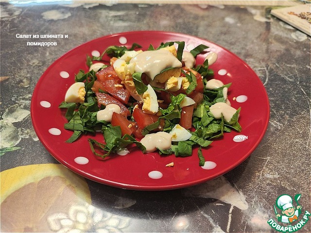 И снова у меня на ужин салат из шпината. Вместо сметаны греческий йогурт, без сока лимона. Вкусно!
