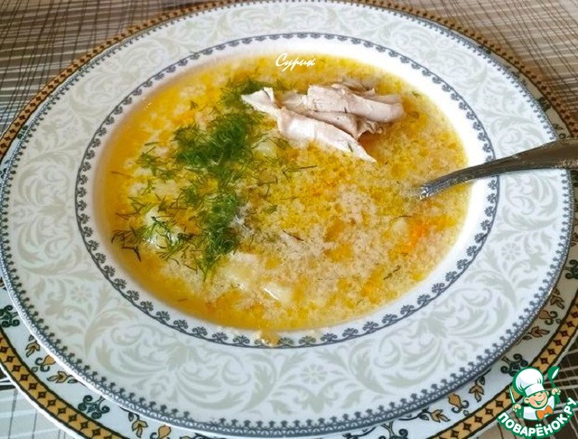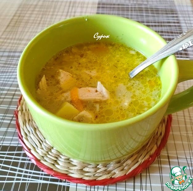 Вкусный быстрый супчик! Бульон был готов, куриные бедра использовала, поэтому быстро сварила суп.