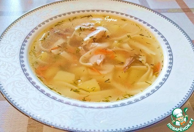 Очень вкусный суп! Ароматный, насыщенный. Лапша у меня магазинная, но очень вкусная.