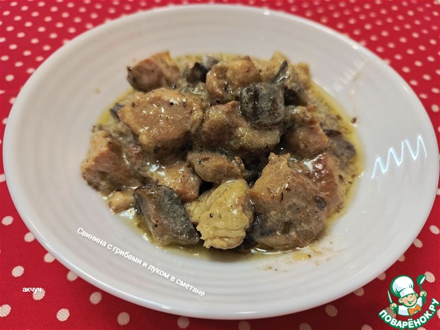 Свинина с грибами и луком в сметане