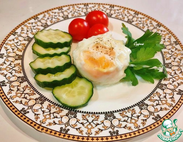 Ещё один вариант приготовления яичницы! В микроволновке делала, теперь попробовала на плите, но в воде. Мне очень понравился этот способ. Отличная яичница! Соус не делала… утро, а там чеснок.