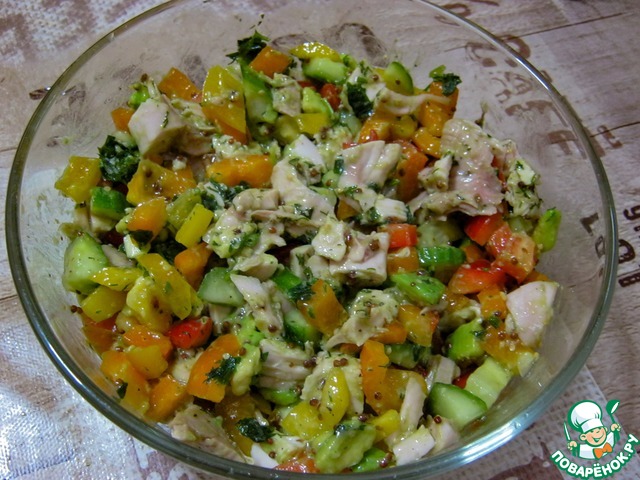 Простой, полезный и яркий салат с авокадо, огурцом и болгарским перцем - отличный выбор для легкого обеда или ужина.