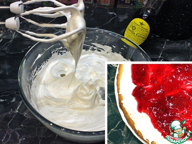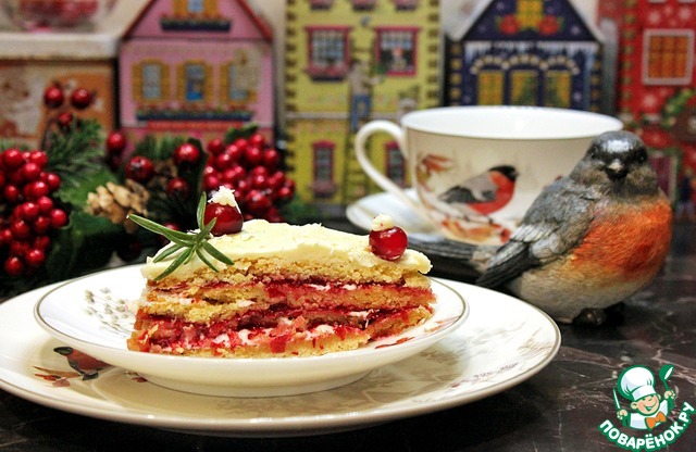 Крем вышел пышный, плотный. Из такого хорошо получаются украшения для торта: орнаменты, цветочки… Вкус у него простоват, но он хорошо держит форму. Я использовала этот крем для прослойки коржей, под клюквенное пюре.