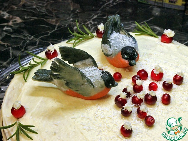 И мой традиционный новогодний пирог, который готовила еще моя мама. Мамин рецепт я взяла за основу, но давно его усовершенствовала, согласно своему вкусу. Подобного рецепта на сайте я не нашла, и ссылку дать не могу. Но крем для прослойки коржей готовила по рецепту: