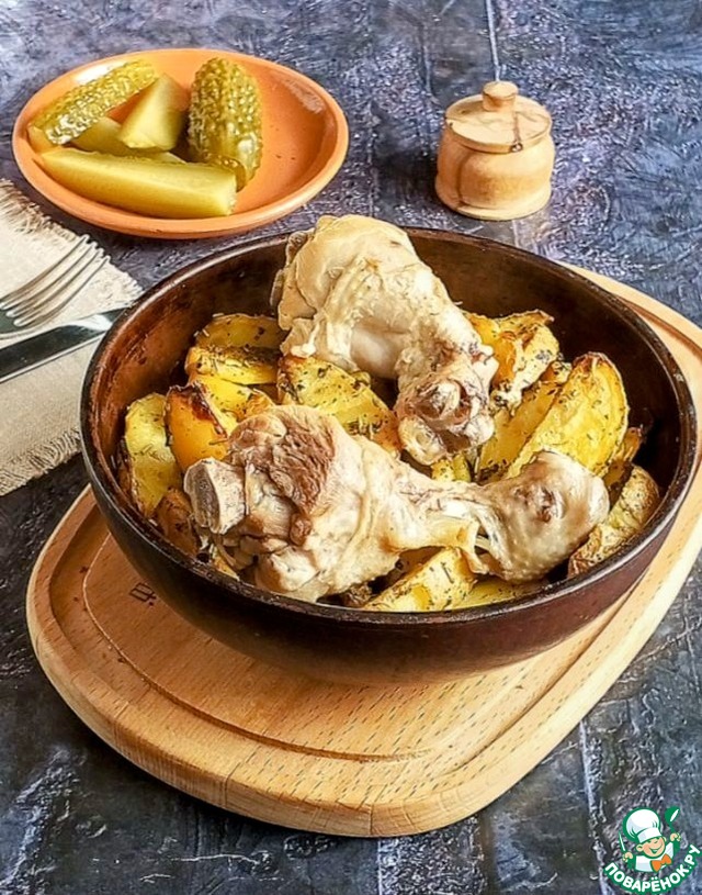 Очень вкусно! конечно я не весь съела картофель и голень только - одну! Так захотелось к этому блюду огурчика маринованного. Съела, а не нужно было на ужин.