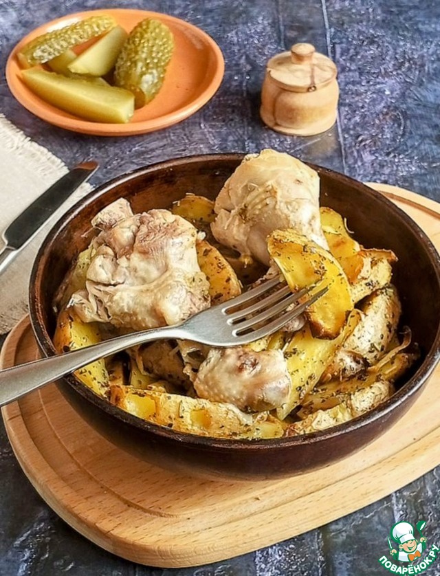 Очень вкусно! конечно я не весь съела картофель и голень только - одну! Так захотелось к этому блюду огурчика маринованного. Съела, а не нужно было на ужин.
