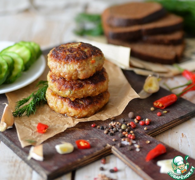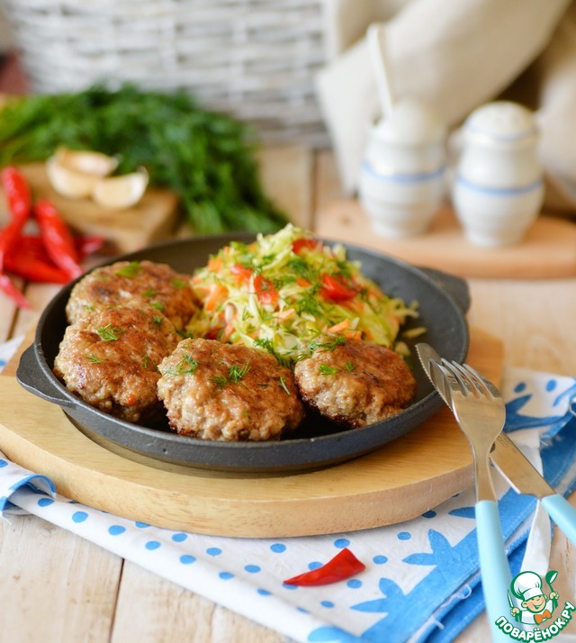 Котлеты "Рецепт-сомнение". https://www.povarenok.ru/recipes/show/23795/ Оригинальное название. В общем, ничего нового, только, обычно вместо сливок - молоко. Ну и на гарнир - овощной салат.