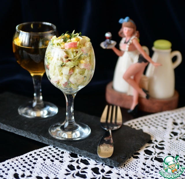https://www.povarenok.ru/recipes/show/44728/ Тоже рецепт от Венеры. Не знаю, почему у крабовых палочек так много ненавистников. У нас этот салат любят все, особенно мои дети с тех пор, как крабовые палочки появились у нас в продаже в 1992 году. Тогда же появилась и консервированная кукуруза, и их быстро соединили в салате. Возможно этот зависит от вкуса, у нас они очень вкусные. И не бывает праздника без этого салата в том или ином виде. А ведь десяток лет назад на сайте был даже конкурс рецептов с крабовыми палочками. Вот, тогда "отгребали")).