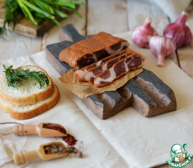 Бастурма из говядины https://www.povarenok.ru/recipes/show/36589/ На сайте много рецептов, выбрала от того, кому доверяю больше всего, от Венеры. Конечно, очень дорого, хорошо, что сваты угостили говядиной. Ну, оно и понятно, это деликатес, готовится почти месяц. Даже купила у узбеков на рынке чаман, не знала, что это. И ещё... главное перед нарезкой хорошо наточить ножи.