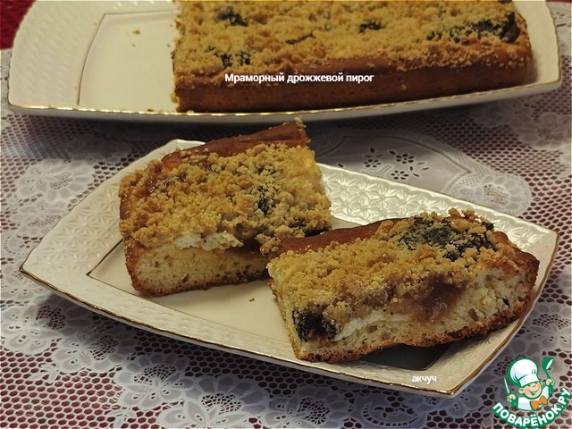 Просматривая рецепты, остановилась на данном. Все продукты были в наличии, вот и решила испечь. Готовила все точно по рецепту. Тесто нежное, поэтому я его не раскатывала, а просто в форме руками распределила. Выпекала 32 минуты при 180 градусах. Ах, какой же вкусный получился пирожок!!!! Словами не передать, нужно самому приготовить. Сам мягонький, штрейзель хрустящий, да еще и разная начинка!!! Для себя сделала некоторые выводы: маковой начинки получилось много, а вот творожной маловато. В следующий раз творожную начинку увеличу.