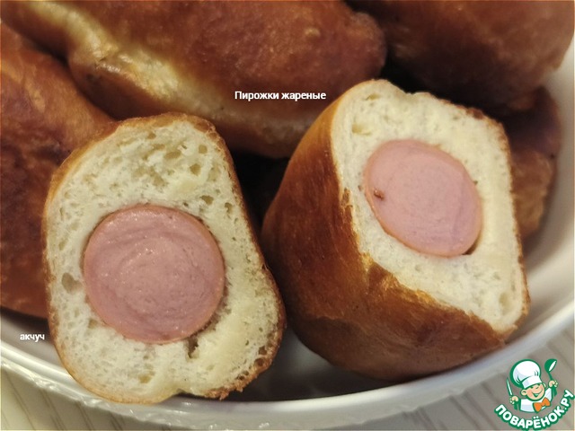 Замечательные пирожки! Воздушные, мягонькие, хрустящие! Я готовила половину нормы. Муки ушло чуть больше. Начинкой послужили сосиски и немного с вареной сгущенкой. Всего вышло 19 штук. Семья в восторге!
