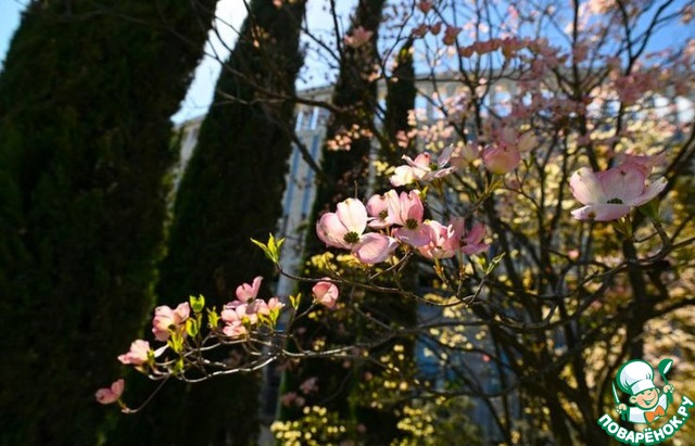 Бесконечные аллеи украшают яркие соцветия дёрена трех оттенков:белые.розовые и красные.Ну ооочень красиво.