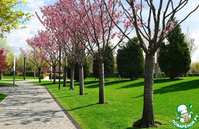 сегодня мы прогуляемся по Японскому саду ....контрастные весенние пейзажи.насыщенная зелень газона.нежные розовые оттенки вишни