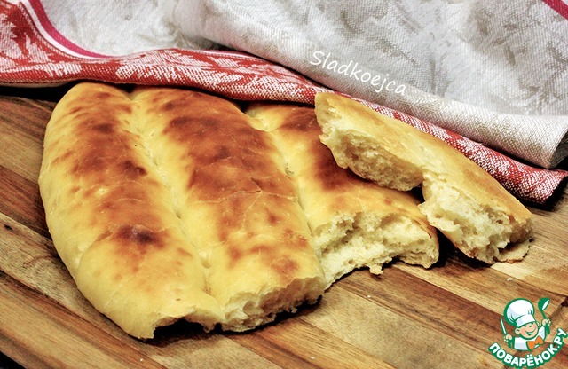 Готовила третью часть от нормы, получилось две средних по размеру лепешки. Очень вкусные, мягкие и пышные. Всю работу делала вручную, из инструментов использовала только скалку.