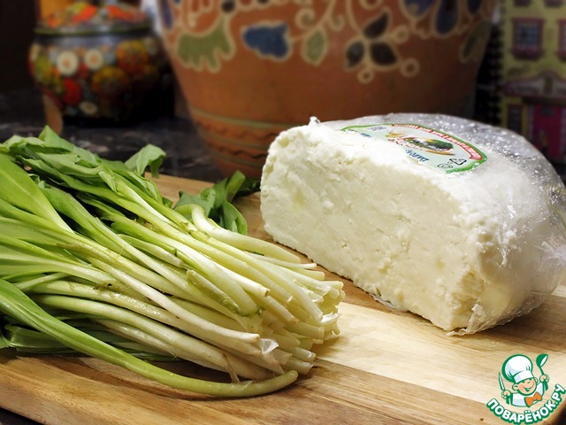 Муж купил на базаре увесистый пучок черемши и полголовки свежайшего адыгейского сыра. Поэтому, начинку я сделала по-своему: с черемшой и адыгейским сыром. Конечно, вариант, предложенный в рецепте, тоже очень вкусный. Тесто я приготовила как у автора (муки ушло немного меньше), но замешивала вручную. На четыре пирога сделала двойную порцию теста. Пироги получились очень мягкие, нежные и вкусные. И тонкие, как и должны быть.