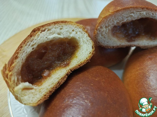 Наконец-то я воспользовалась рецептом. Готовила половину нормы. Муки ушло меньше. У меня было жидковатое яблочное повидло, добавила в него манку. Налепила 12 пирожков. Перед выпечкой смазала их молоком. Выпекала 18 минут при 180 градусах. Получились вкусные мягкие пирожки. Семья осталась довольна!