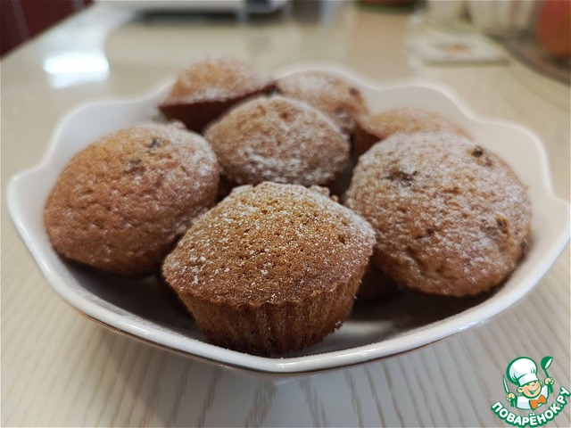 Готовила половину нормы без кураги. Стакан использовала 250 мл, сахара уменьшила до 150 мл. Соды 1 ч.л., соли щепотка. Выпекала в маленьких формочках 25 минут при 180 градусах. Получилось 16 штук (не полный противень) вкусных кексиков.