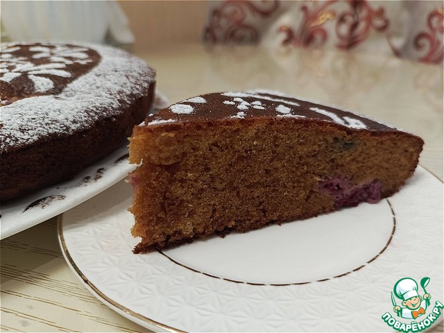 Сегодня все на работе и мне захотелось порадовать семью к вечернему чаепитию. Стакан использовала 250 мл. Вместо фруктов брала вишню из заморозки, дав ей слегка подтаять. Выпечка со сгущенкой очень быстро румянится, поэтому я сначала пекла 20 минут при 180 градусах, потом прикрыла форму фольгой и допекала еще 25 минут. Пирог получился вкусным, мягеньким. Думаю, что количество масла можно чуть уменьшить. Но это уже в следующий раз.