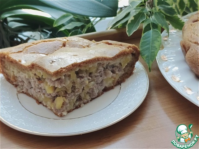 Решила побаловать родных. Вместо филе у меня свиной фарш. Картофель мелко порезала, лук не обжаривала. Далее все по рецепту. При 180 градусах пирог запекался 40 минут. Потом просто отдыхал в духовке минут 30 (больше не выдержали!). Получился ооочень вкусный и сытый пирожок!!!