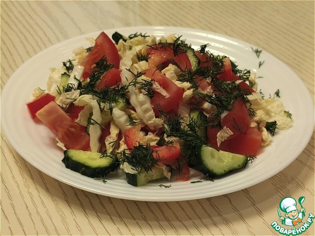 Я готовила как салат, без тушения. Использовала пекинскую капусту. От себя добавила укроп. Получился вкусный салат. Отлично пошел на ужин.