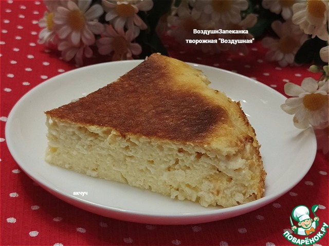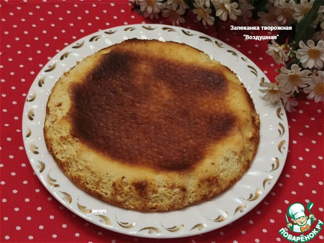 Готовила запеканку в мультиварке в режиме «Выпечка» 50 минут. В ней же дала остыть при закрытой крышке. После выпечки запеканка была очень пышной, но потом опала. Но это не повлияло на вкус. Очень вкусно получилось! Готовила без ягоды, вместо эссенции ванильный сахар и сахара добавила лишь 2 ст.л.