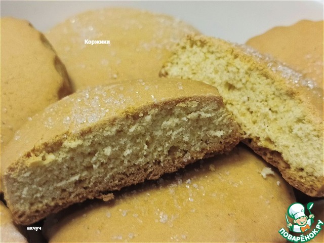 Немного смутило, что в рецепте не указано количество муки, ну хотя бы приблизительно. Но решила воспользоваться рецептом. Маргарина брала 70 г, сахара 169 г, муки 470 г. Ну и остальное по рецепту. Раскатывала не тонко, где-то 0,5-0,7 см. Коржики еще выросли в духовке. Выпекала 15 минут при 180 градусах. Верх посыпала слегка сахаром (в следующий раз обойдусь без посыпки, она здесь лишняя на мой взгляд). Получилось два противня замечательных вкусных коржиков. Буду повторять!