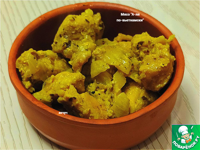 Семья просит мясо, вот и приготовила на ужин. Мясо с луком и чесноком простояло несколько часов. Далее все по рецепту. Мясо получилось нежнейшее, в меру остренькое, очень вкусное! И готовилось практически без моего участия.