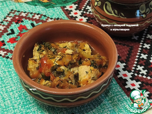 Я готовила меньше половины от нормы, поэтому использовала маленькую толстостенную кастрюльку. Из зелени брала щавель (как здорово, что я его заморозила!!!) и укроп. Из специй: сванская соль и хмели-сунели. Воды наливала совсем немного, но в следующий раз добавлю больше, так как получился ооочень вкусный бульон-соус. В итоге получилась замечательная курочка и отличная подлива.