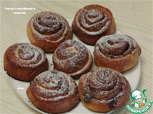 Обратила внимание на улитки с картофелем и творогом еще с отчетов в ГВ. Очень заинтересовала начинка. Но вот с тестом, которое расстаивается в холодильнике у меня не получается: оно в моем холодильнике жить отказывается