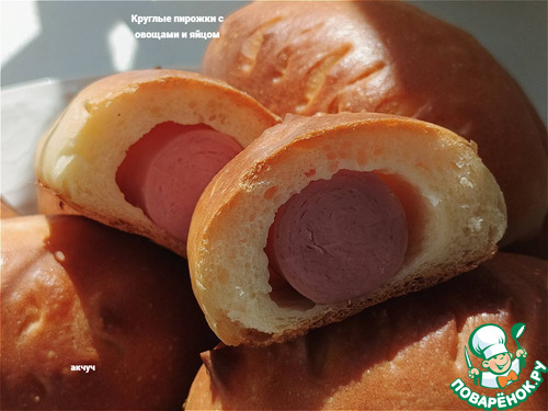 Готовила половину нормы. Так как мое семейство не любит капустную начинку, пекла с сосисками. Ну и форма соответственно, другая. Верх смазывала молоком (не было у меня сметаны). Выпекала 25 минут при 180 градусах. Получилось ожидаемо вкусно.