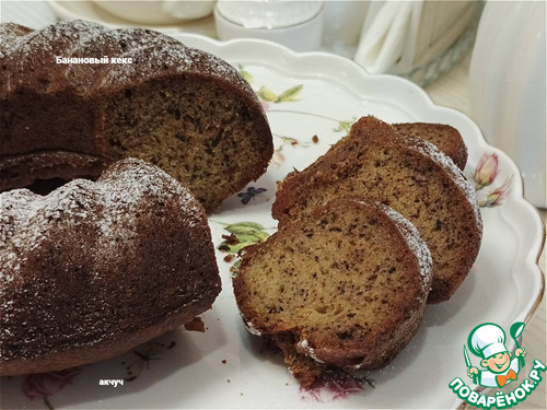 Замечательный вкусный кекс. Выпекала 50 минут при 180 градусах. Использовала два банана, которые предварительно измельчила погружным миксером. Результат порадовал всю семью.