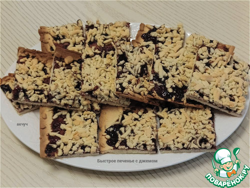 Приготовила сегодня печенья. Показалось, что теста очень мало, поэтому форму брала поменьше. Далее все по рецепту. Выпекала печенье 30 минут при 180 градусах. Еще в форме порезала на квадратики ножом для пиццы и дала там же остыть. Получилось вкусное, хрустящее печенье. Нам очень понравилось. Один минус: маловато вышло.