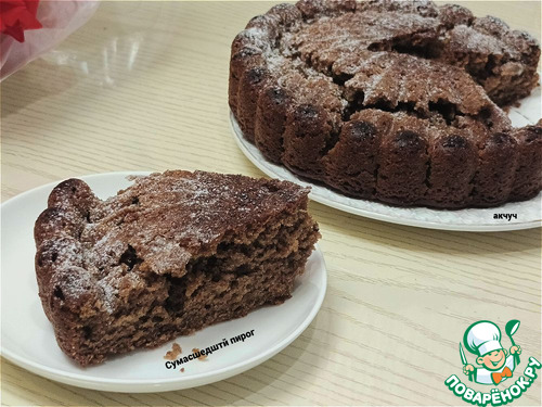 Готовила половину нормы. За основу брала стакан 200 мл. Использовала яблочный уксус. Не хватило какао, добавила порошок капучино. Легко ложкой все замесила и выпекала 45 минут при 180 градусах. Наверное, поторопилась вынуть из формы, поэтому низ (в моем случае верх) пирога слегка прилип ко дну. Сначала показалось, что корочка очень сухая, но мякиш нежный, воздушный. Но когда пирог ночь постоял, то и корочка стала мягонькой. Вкусный вышел пирожок.