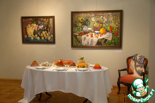 Работники музея провели грандиозную подготовительную работу, чтобы заинтересовать и удивить гостей. Думаю со своей задачей они справились на отлично. Пост имеет ознакомительный характер, поэтому нам показали только общие планы, а хотелось бы, очень хотелось бы увидеть всё своими глазами. Завидую людям, которые имеют возможность посетить выставку. Если кто-то из участников сайта побывает там, не поленитесь, покажите кулинарные шедевры на Поварёнке.