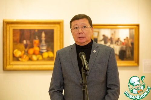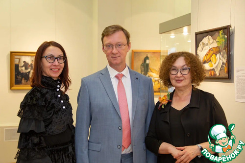 Мы очень надеемся , что вы посмотрите не только произведения Русского музея, но и пройдете в другую часть зала, где представлены картины Республиканского музея изобразительных искусств. Это совершенно прекрасные натюрморты, которые дополняют коллекцию Русского музея и позволяют зрителю плавно перейти из XIX, XX веков в век XXI и посмотреть, как люди в наше время воспринимают натюрморт, еду, общий стол".