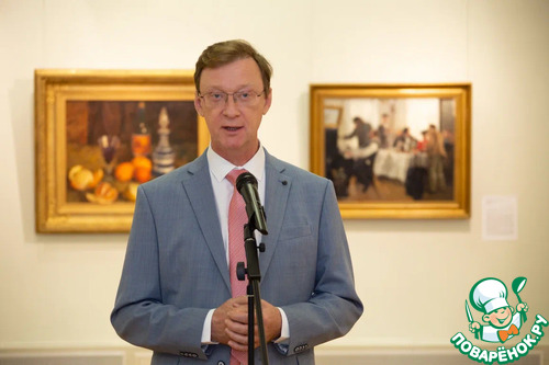 Заместитель генерального директора Русского музея по учёту, хранению и реставрации музейных предметов Сергей Владимирович Сирро: "Для Русского музея открытие новой выставки - не менее важное событие, чем для Республики Марий Эл. Почему мы выбрали для выставки тему обеда и натюрморта? Стол — это всегда то, что объединяет, позволяет посмотреть друг другу в глаза, о чем-то поговорить, обсудить насущные темы. Если это деловые переговоры, то они лучше проходят за обеденным столом, чем за чиновничьим. Мы привезли сюда произведения, которые знаменуют собой XIX век, ту эпоху, когда натюрморт стал достаточно важен и заметен в русской живописи.
