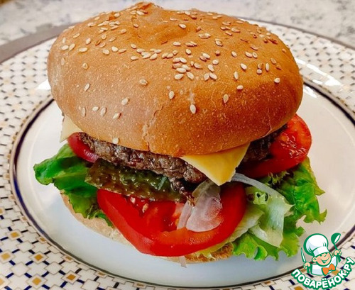 Готовили с внуком. Булочку слегка обжарили/подогрели на сковороде сухой. Котлета говяжья, обжарили. Добавили ещё помидор. Вкусно, необыкновенно!
