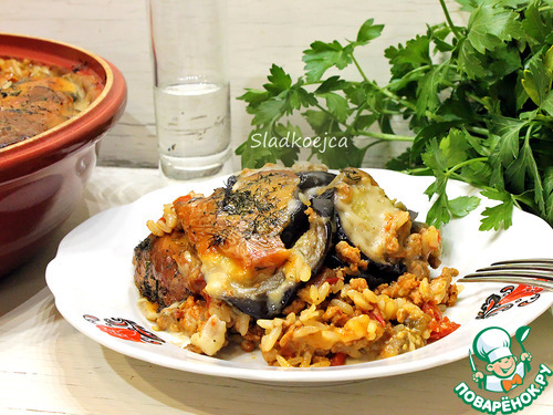 Мусака нам нравится, но с рисом готовлю впервые. Сделала все по рецепту, конечно, получилось вкусно, хотя и непривычно. Сыр использовала сулугуни, он хорошо расплавился и зарумянился в духовке. Интересно было попробовать, но без риса мне вкуснее